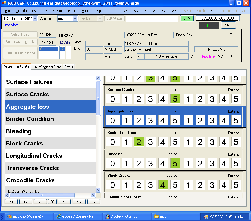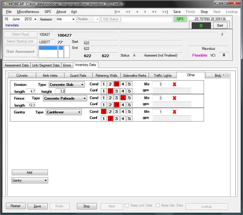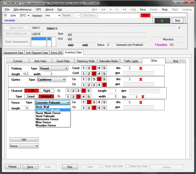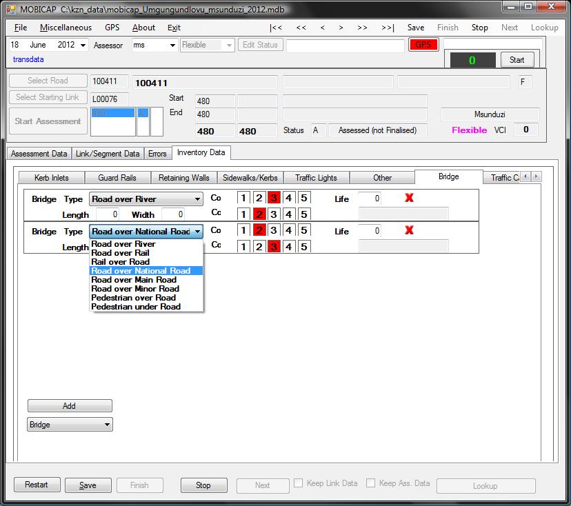 The user is central to the design of Mobicap and the graphical user interface is enhanced to Speed up the assessment of roads, Mobicap can be further customized and modified to suite your needs. Assessment data input forms are customized to provide for the actual data being captured in any specific project.